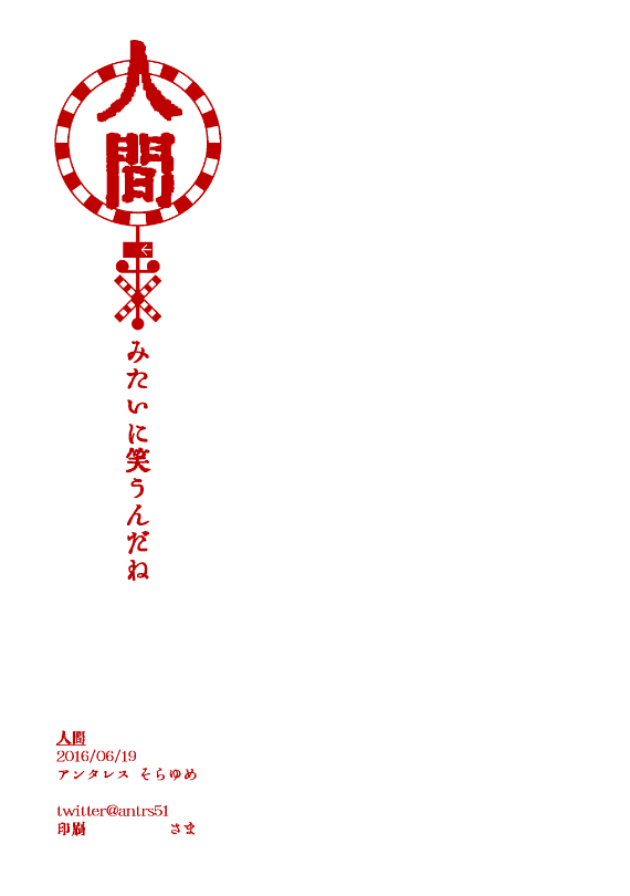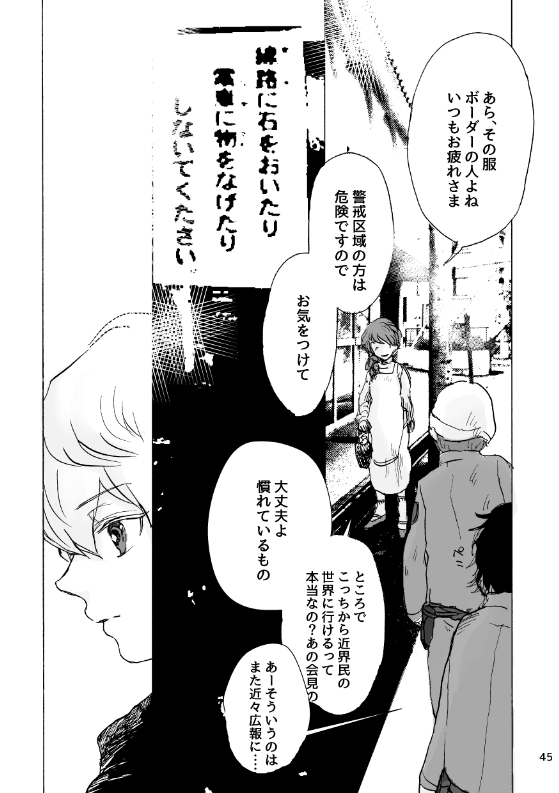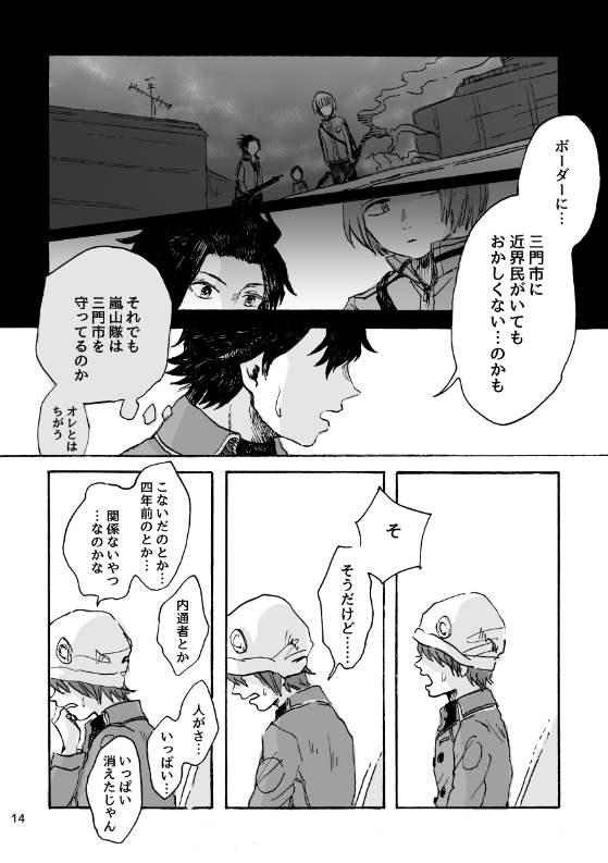 人間(近界民と三門市民) (16/06/19)吾が手に引き金を7にて発行した「人間」web再録お手に取っていただいた方、ありがとうございました! previouswt-髪の いヒーロー(葉華)nextwt-墓と肉(林藤と風間)