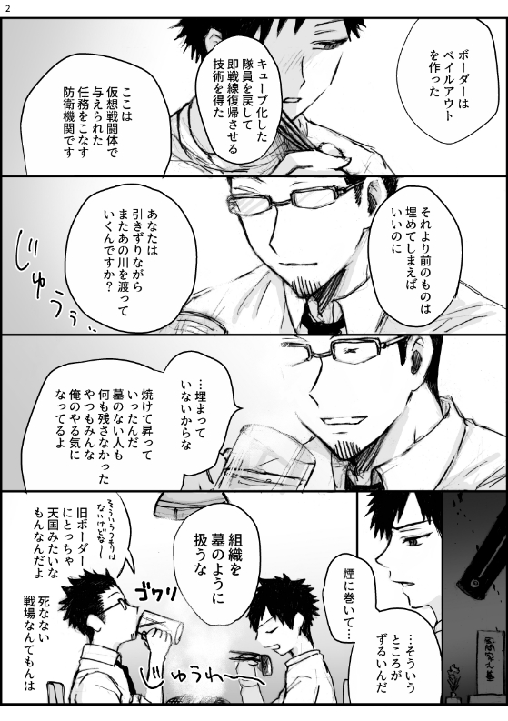墓と肉(林藤と風間) (18/03/18)吾が手に引き金を15にて「林藤匠ペーパーアンソロジー企画」様に参加させていただいたものです previouswt-人間(近界民と三門市民)nextwt-懺悔の海(迅と遊真)