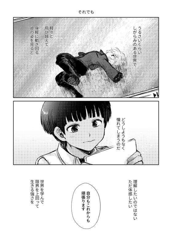 憧れ(帯島と遊真) (19/11/17) 吾が手に引き金を20にて頒布した無配ペーパー 帯島ちゃんという存在が本誌に登場して興奮のままに描いた previouswt-味わう(当奈良)nextwt-LIMBO(遊真)